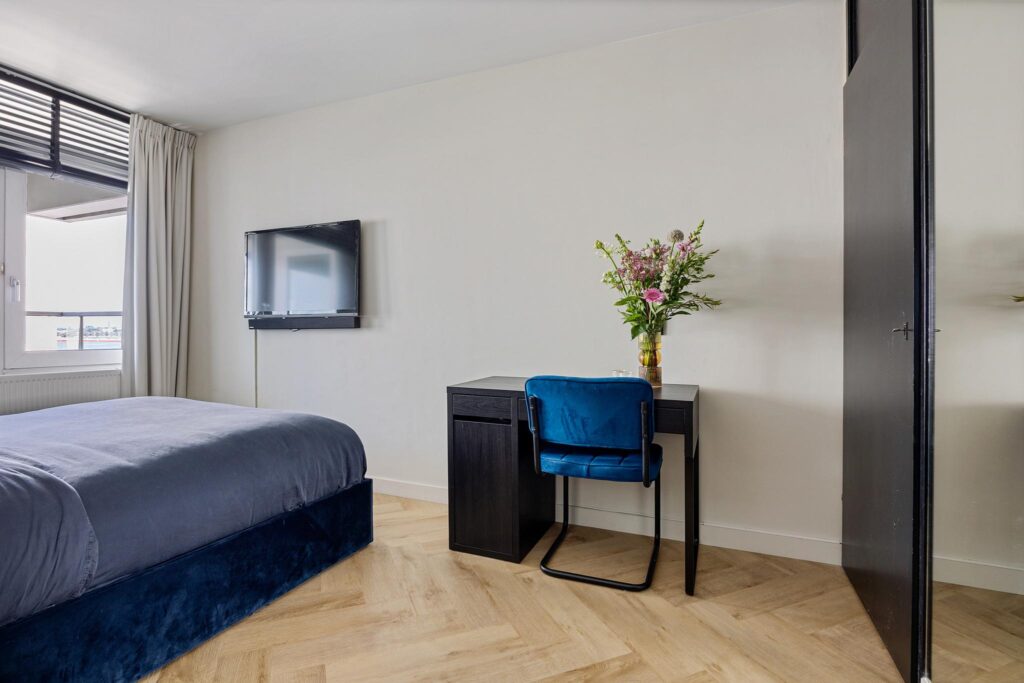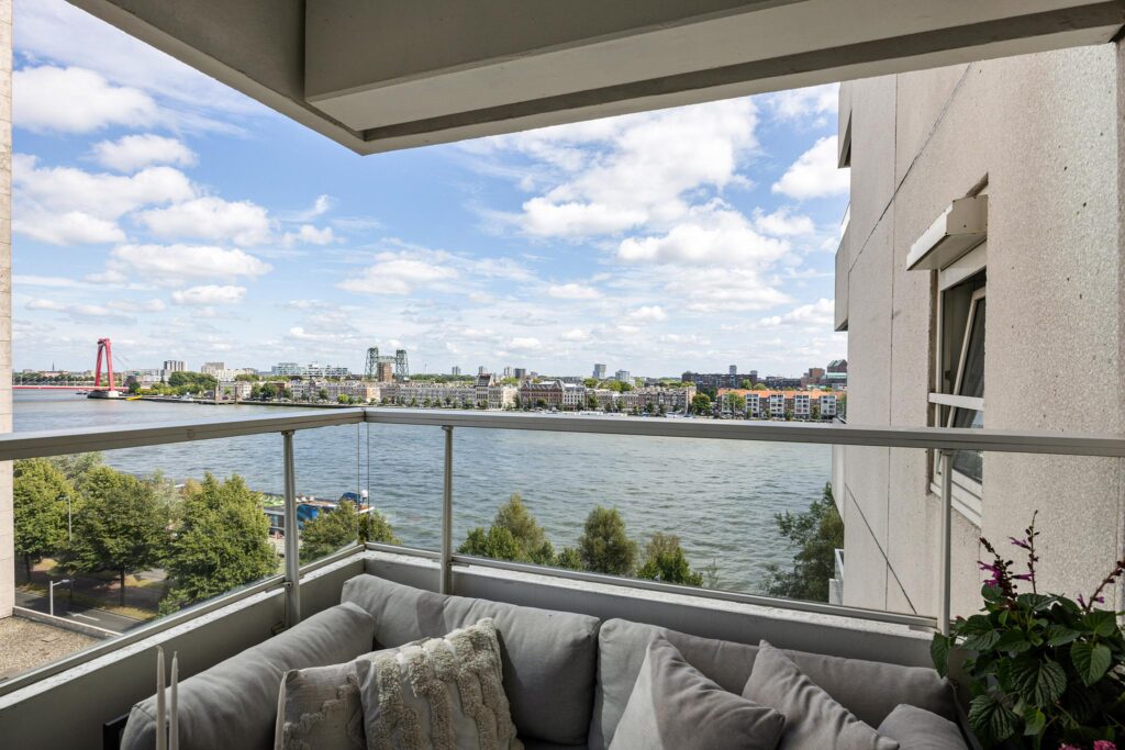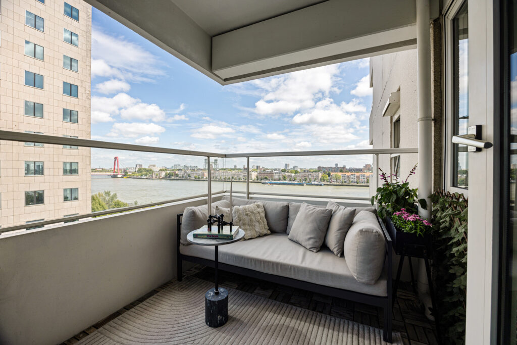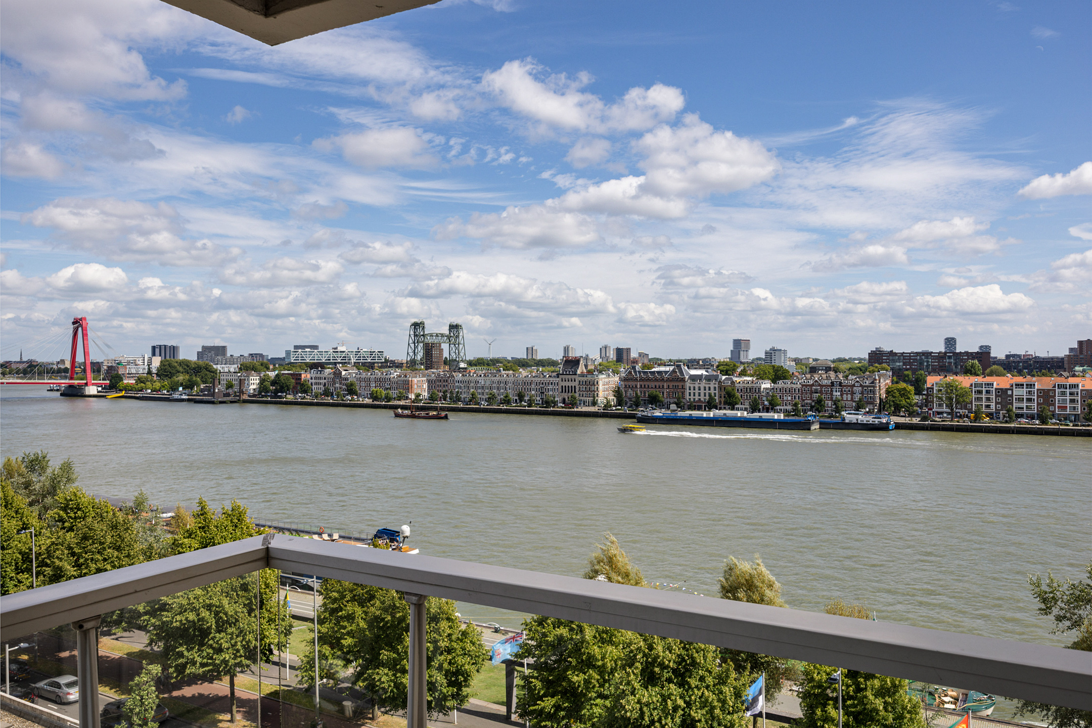 Wonen op grote hoogte met een adembenemend uitzicht over Rotterdam. Dit strak gerenoveerde appartement op de 8e verdieping van gebouw De Schoener biedt het allemaal. Zie je jezelf al kokkerellen in de geweldige keuken of genieten van de hotel-chique badkamer? Aan de ene kant kijk je uit over de levendige Maas met zijn iconische skyline en aan de andere kant over de charmante binnenhaven – een zeldzame combinatie die elke dag opnieuw inspireert.