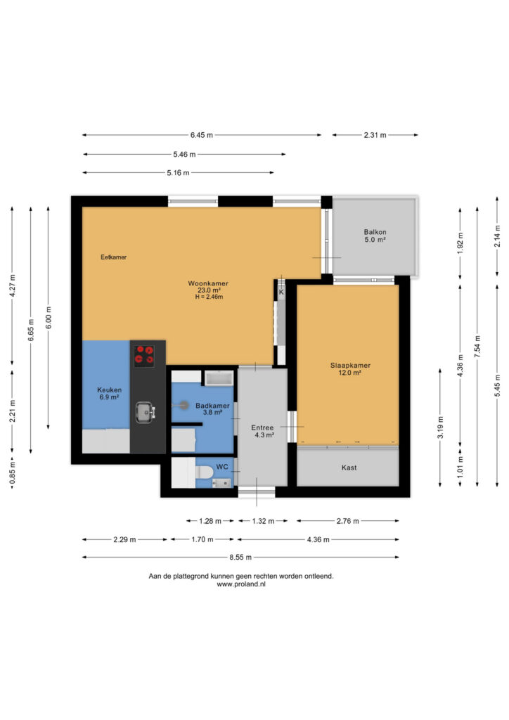 Zie de bijgevoegde plattegronden voor de maatvoering.