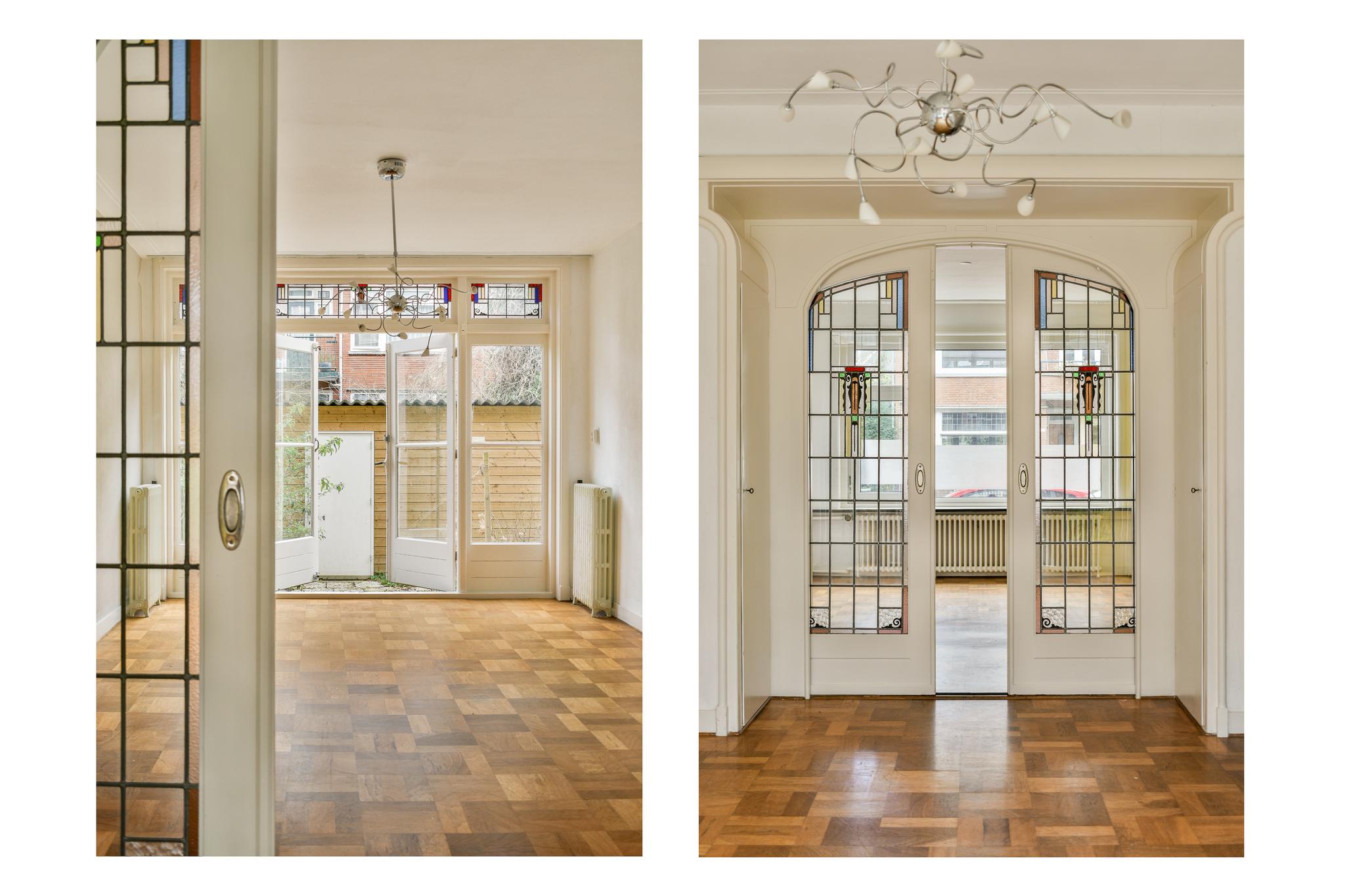 Op de begane grond bevindt zich de ruime en lichte woonkamer met de fraaie en suite-indeling. De originele schuifdeuren en vaste kasten zorgen voor een knusse, maar open sfeer. Via de openslaande deuren bereik je de zonnige achtertuin met berging – een fijne plek om te ontspannen of te genieten van een kop koffie in de ochtend- en middagzon. Aan de achterzijde van de woning ligt de keuken, die indien gewenst kan worden opengebroken om een moderne leefkeuken te creëren die naadloos aansluit op de woonkamer. Op de eerste verdieping bevinden zich drie goed bemeten slaapkamers en een nette badkamer. Tot slot beschikt de woning in het souterrain nog over een handige opbergruimte en/of wijnkelder.