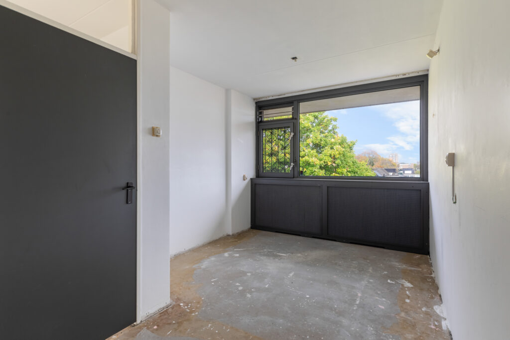Dit twee kamer appartement is gelegen in een degelijk jaren ’70 complex met lift, (eigen) parkeerplaats voor de deur en uitzicht op de achtergelegen groenstrook met bomen.