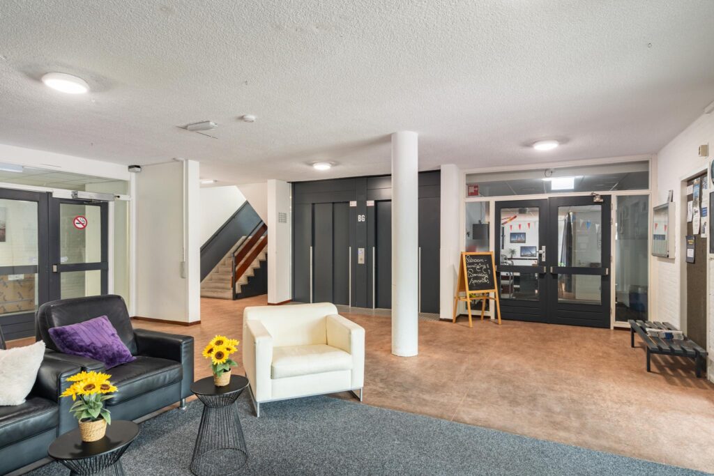 – afgesloten portiek, entree met trappenhuis en liften, fietsenberging en gemeenschappelijke recreatie ruimte.