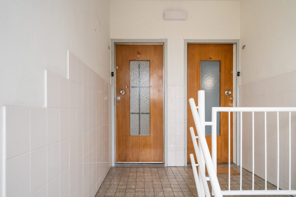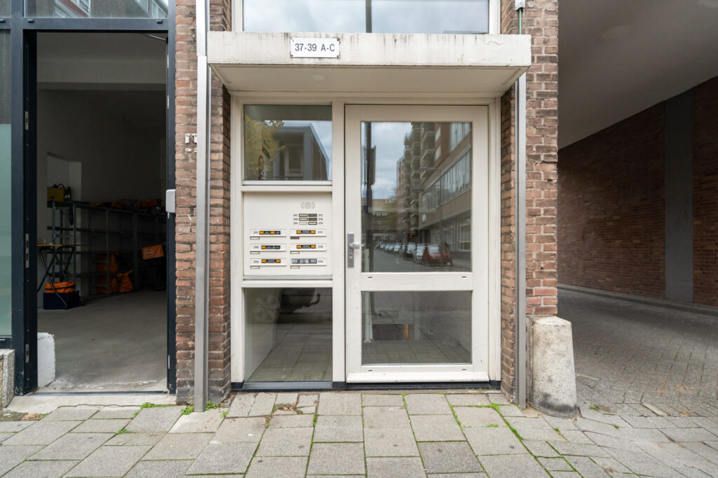 Begane grond: gezamenlijke entree, met brievenbussen en een bellentableau, trappenhuis.
