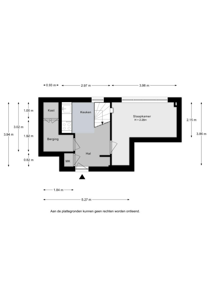 Souterrain: Entree, hal, keuken, slaapkamer, berging trap naar begane grond