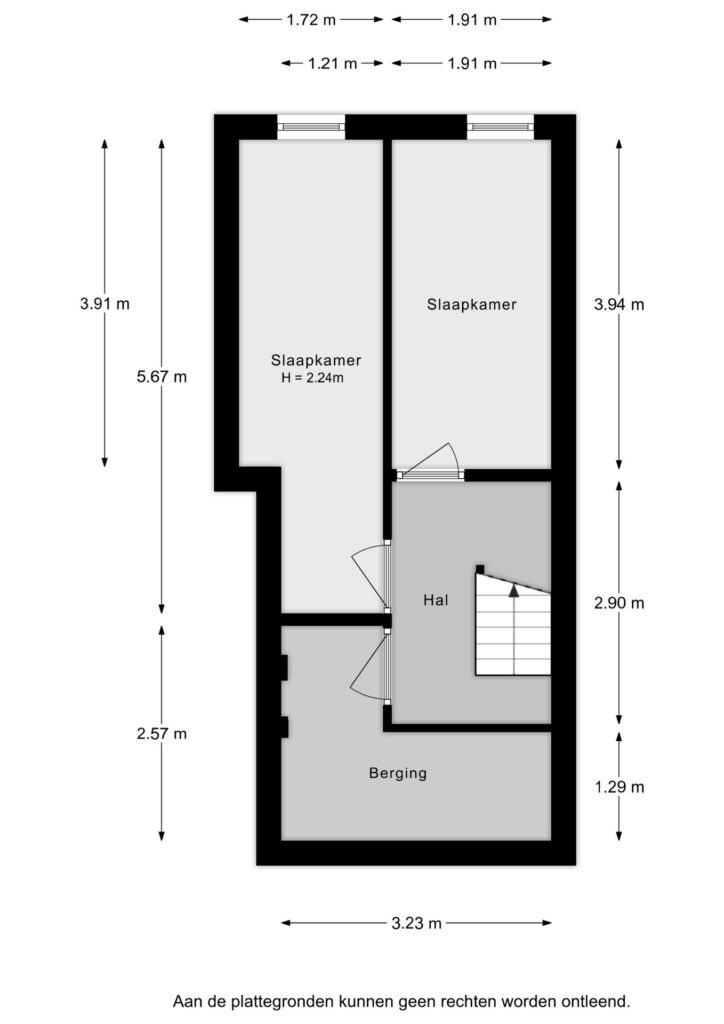 Souterrain: Overloop en twee slaapkamers aan de achterzijde