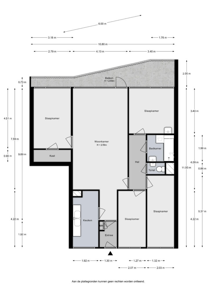 Zie de bijgevoegde plattegronden voor de maatvoering van dit leuke appartement