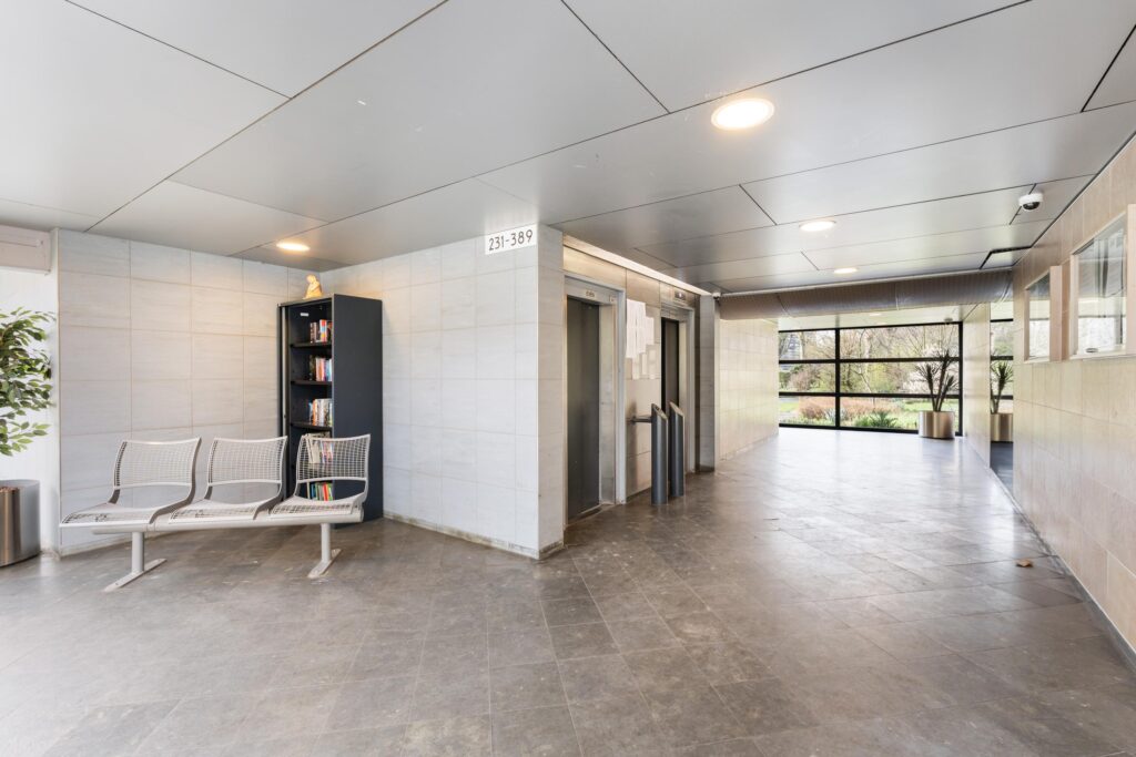 – afgesloten entree, hal, liftinstallatie.