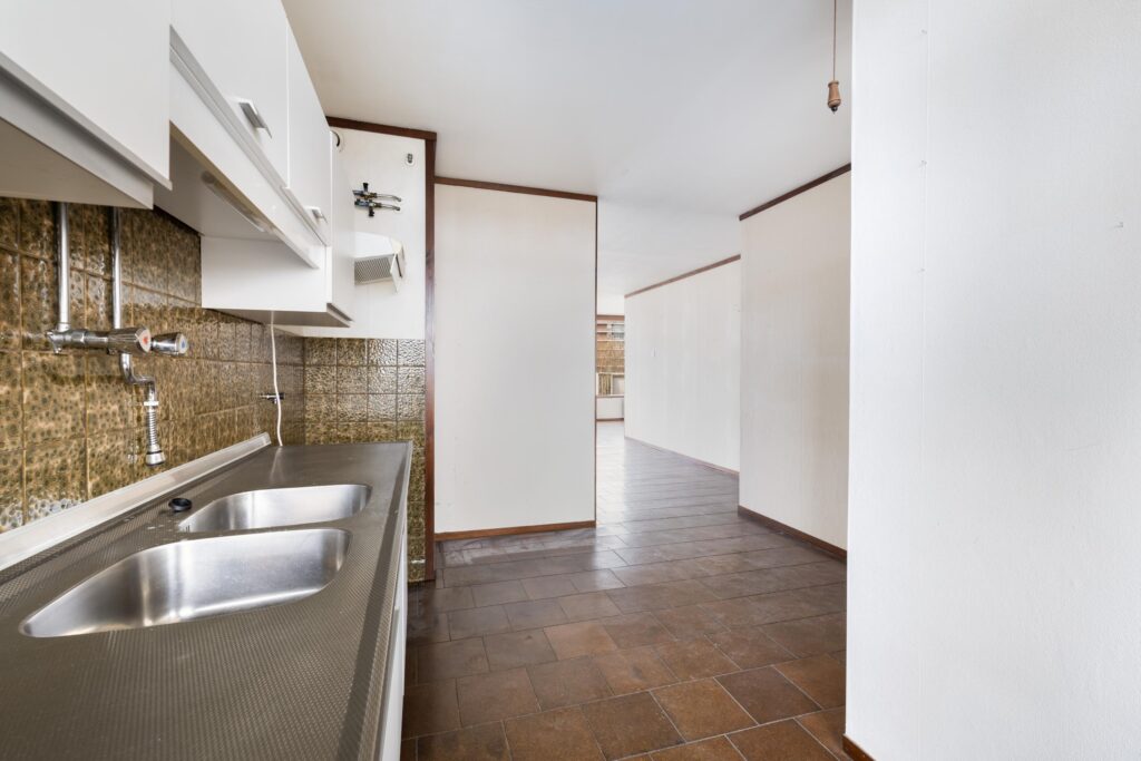 – nette eenvoudige keuken in rechte opstelling;