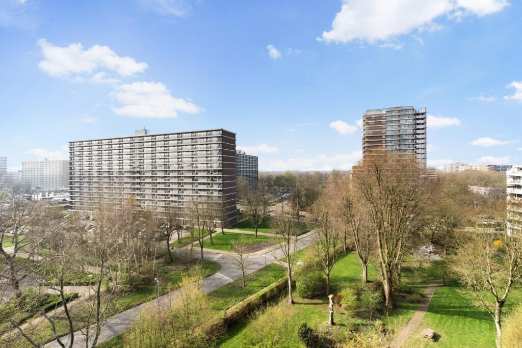 Op de achtste en bovenste verdieping van een keurig onderhouden appartementencomplex in Rotterdam – Ommoord, bevindt zich een prachtig vier, voormalig vijf kamer appartement. Deze woning beschikt over een ruime doorgebroken woonkamer, drie slaapkamers en een breed balkon. De gunstige ligging van het appartement biedt handige toegang tot het winkelcentrum “De Binnenhof”, scholen en het openbaar vervoer via zowel bus als metro. Bovendien is er een vlotte bereikbaarheid naar de A16/A20 uitvalswegen.