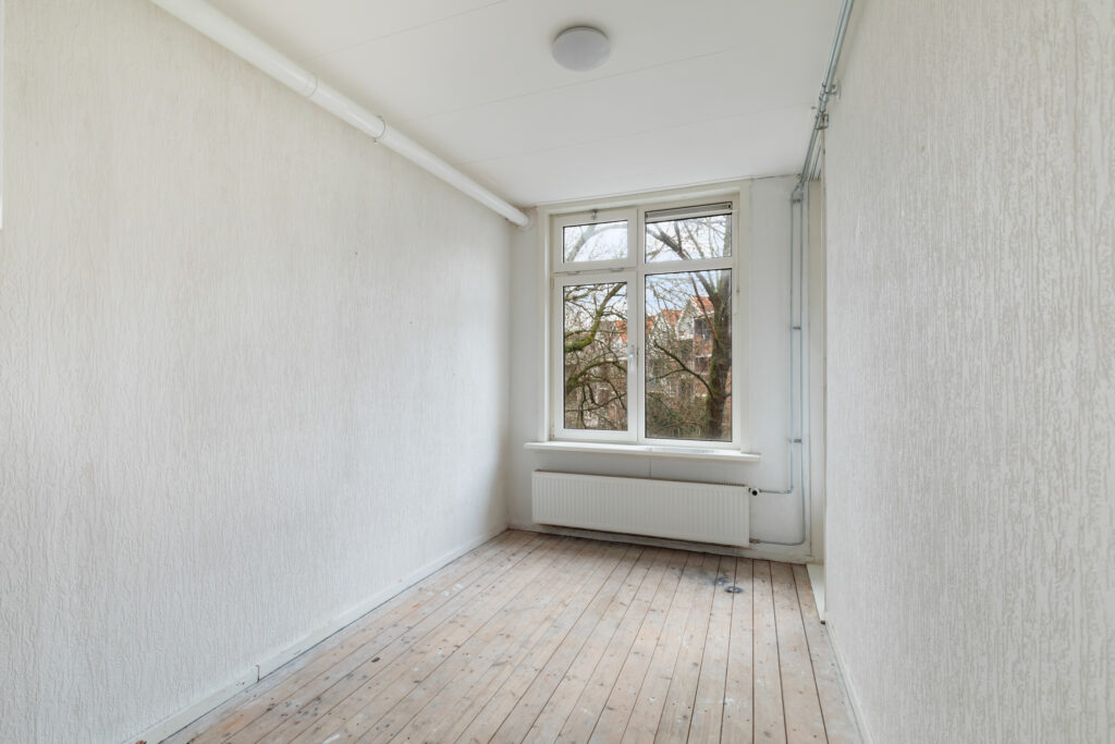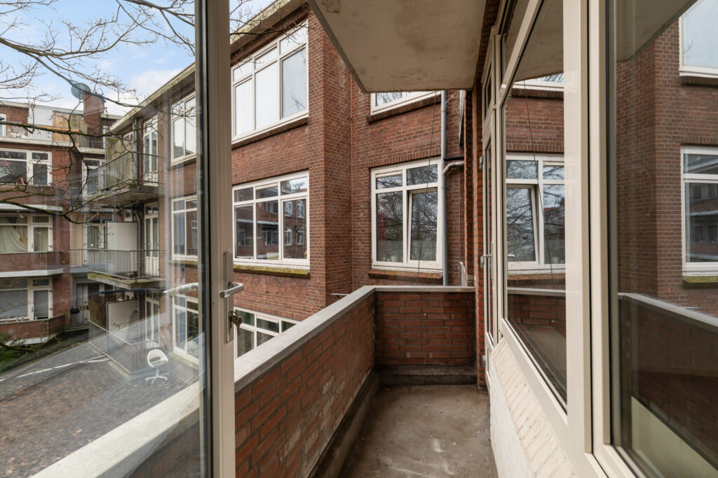 De woning zelf heeft een prettige en klassieke indeling, waarbij direct de fraaie en suite opvalt. Dit authentieke detail zorgt voor een stijlvolle scheiding en geeft de woning extra charme. De aparte keuken is keurig afgewerkt en de twee slaapkamers beschikken beiden over een toegang tot het balkon aan de achterzijde, waar je heerlijk in alle rust kunt zitten.