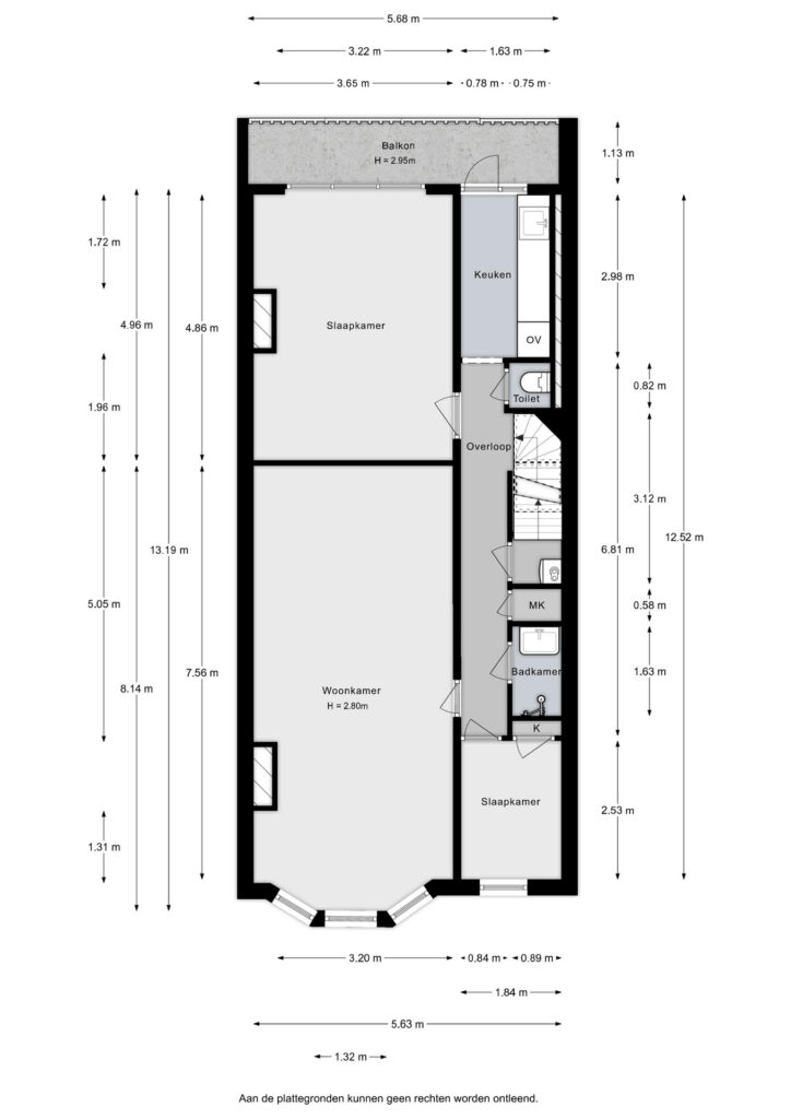 Zie de bijgevoegde plattegronden voor de maatvoering van dit leuke appartement.