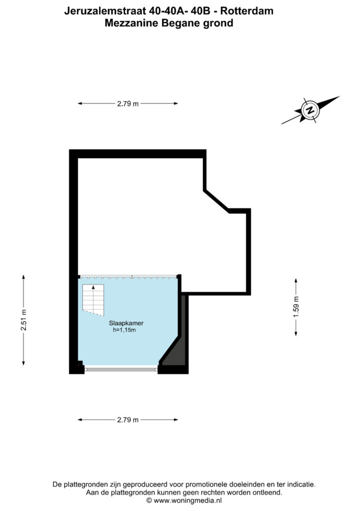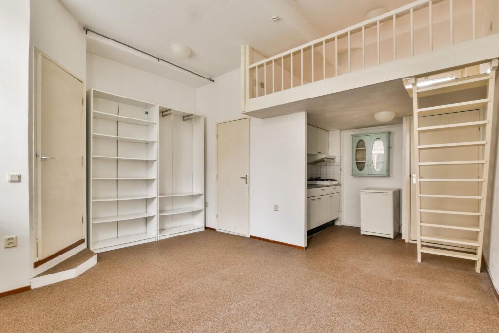 eigen entree, hal, woonkamer (stahoogte 3.36m) met open keuken. Badkamer met douche, toilet, wastafel en witgoedaansluiting. Trap naar entresol (stahoogte 1.15m).
