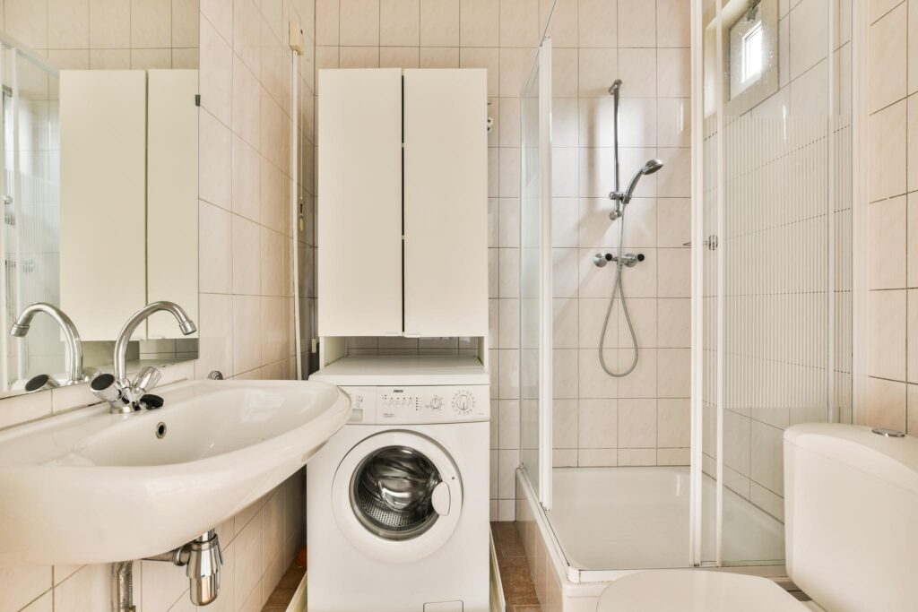 eigen entree, hal, woonkamer annex slaapkamer met open keuken. Badkamer met douche, toilet, wastafel en witgoedaansluiting.