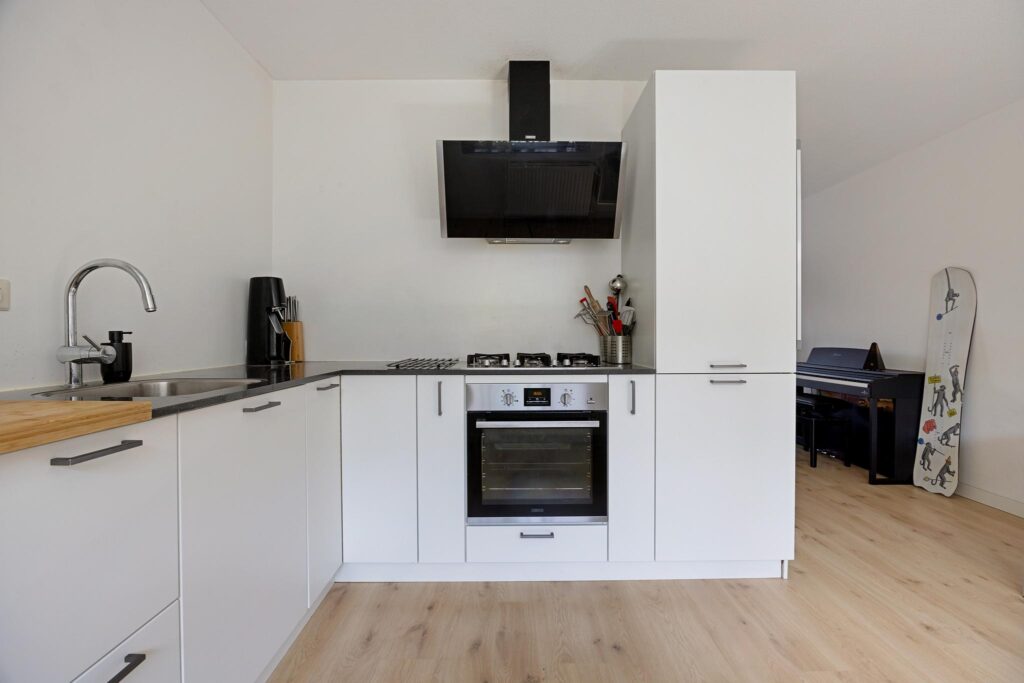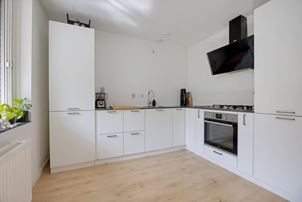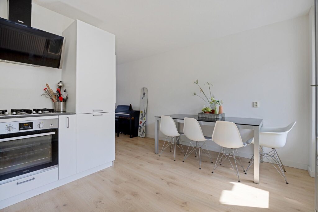 Bij binnenkomst valt direct de ruime opzet van het appartement op. De royale zitkamer is een fijne plek om te ontspannen en biedt dankzij grote raampartijen veel lichtinval. Aangrenzend vind je de woonkeuken met een moderne keuken in hoekopstelling, compleet met diverse inbouwapparatuur – perfect voor gezellige diners of een snelle maaltijd.