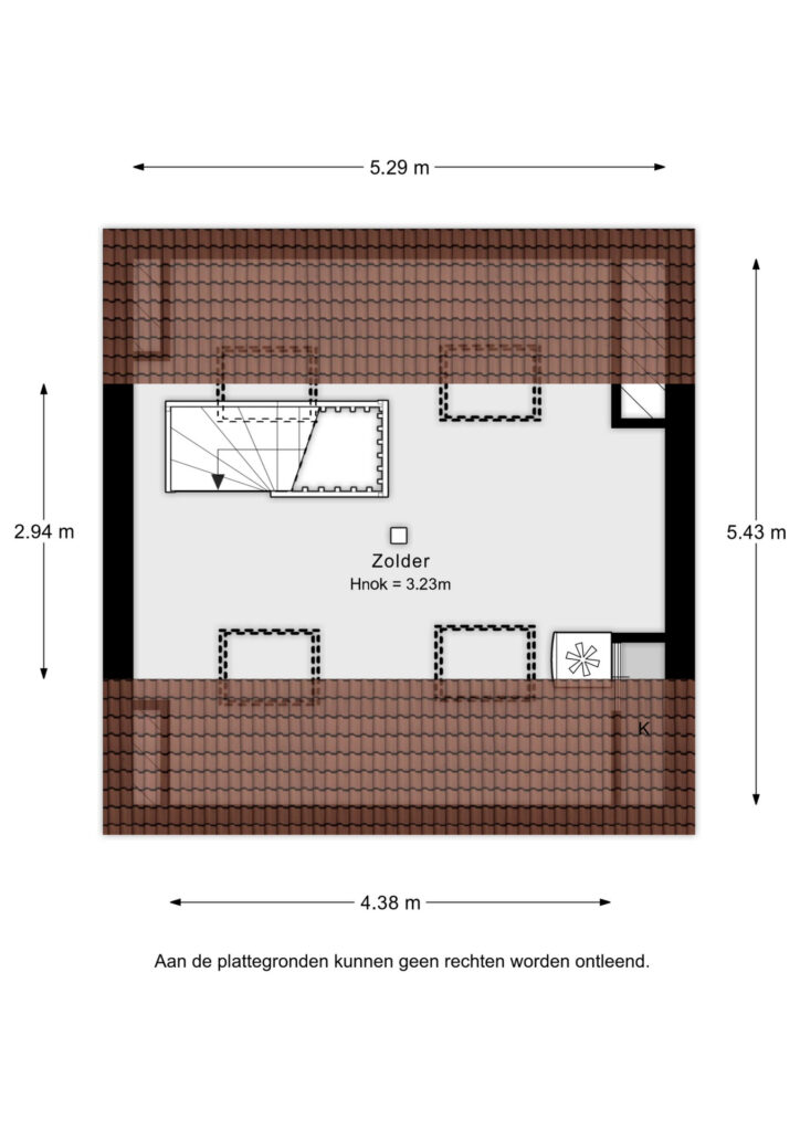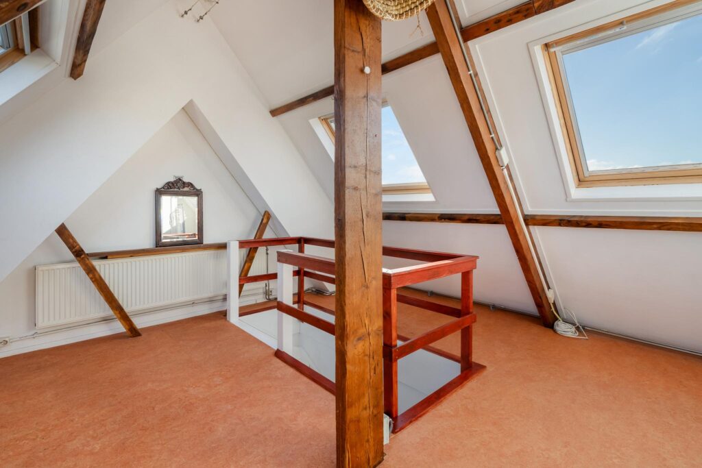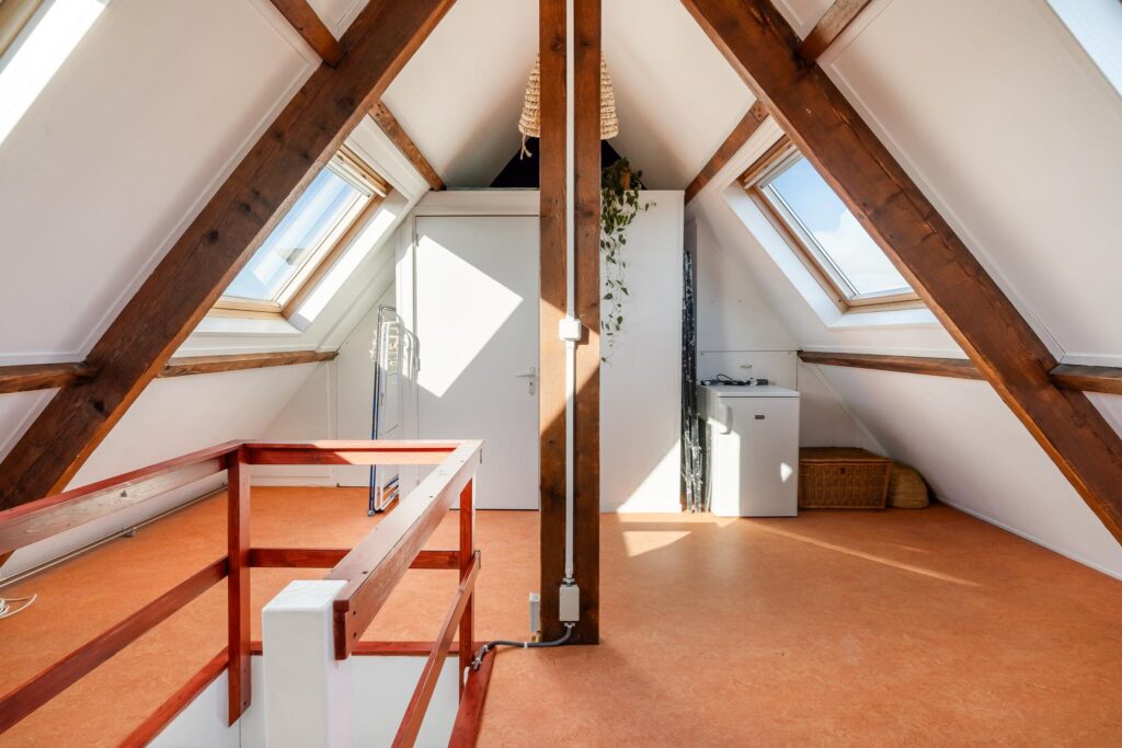 Bereikbaar middels vaste trap, open ruimte met dakvensters.