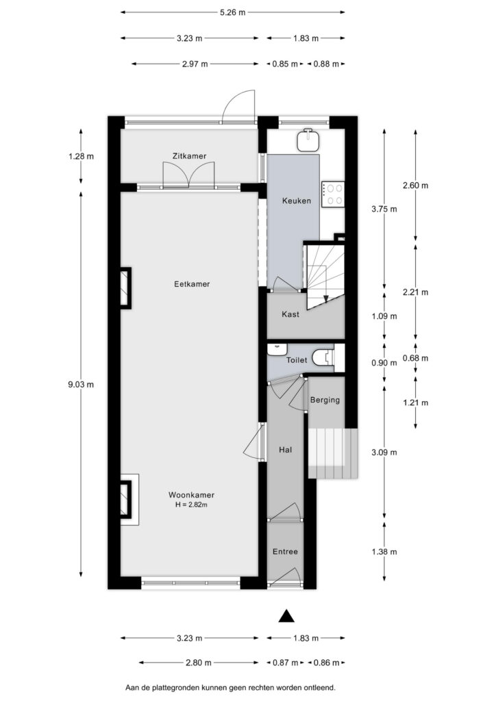 Eigen voordeur, tochtportaal, hal, berging, toilet. Doorzon woonkamer, serre met deur naar tuin. Halfopen keuken met nette opstelling, ruime proviandkast onder de trap naar de eerste etage.