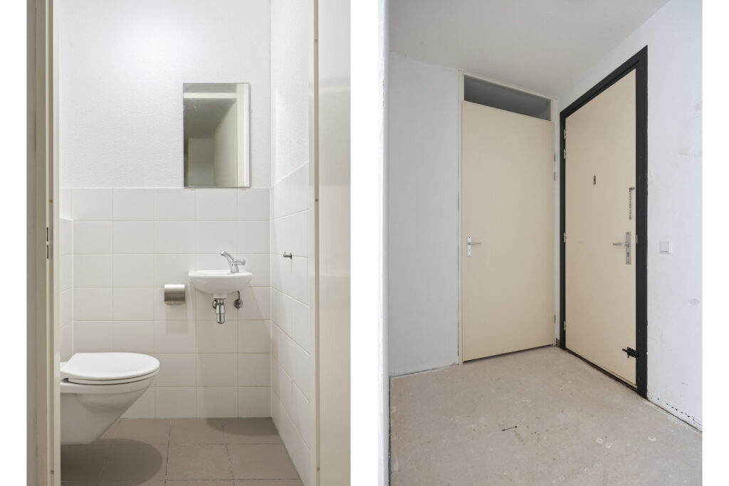 – entree van de woning, voorzien van een meterkast en toilet met fonteintje;