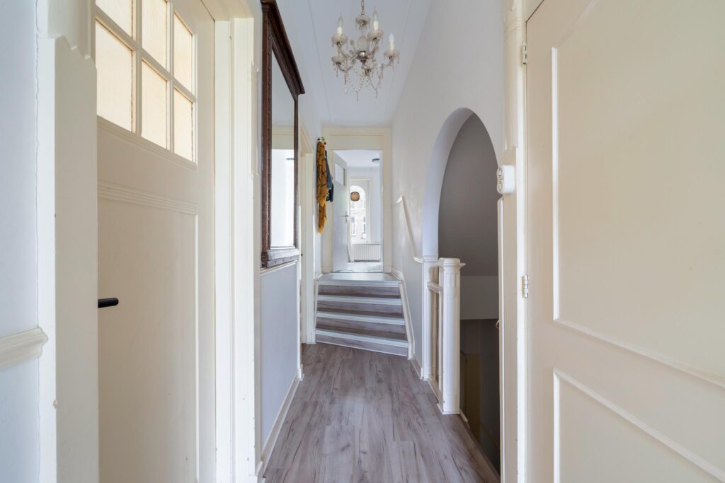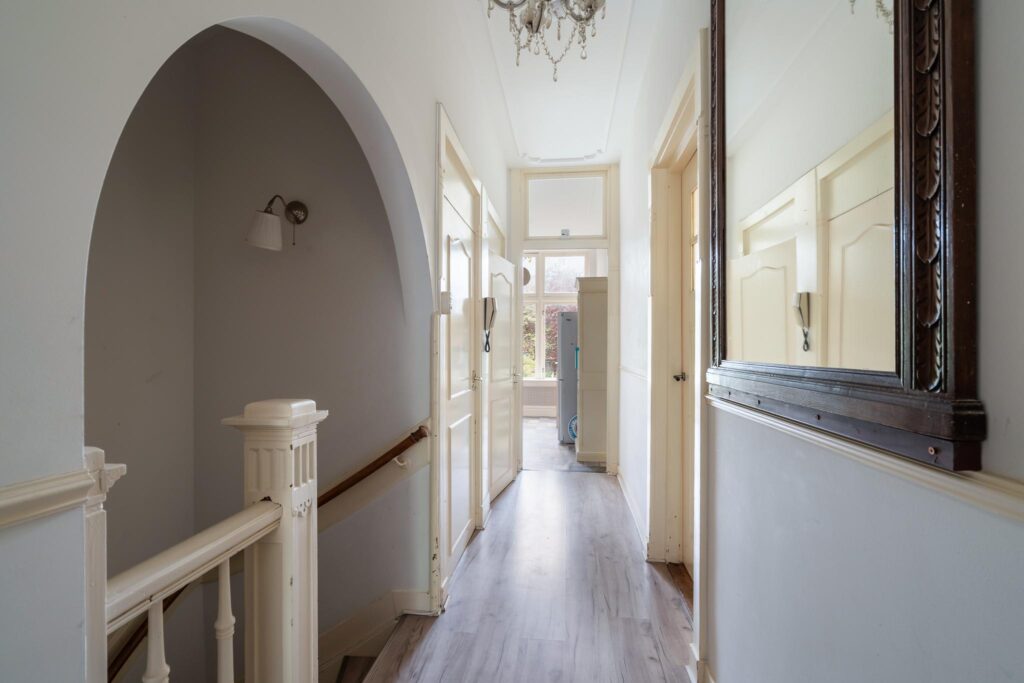 De woning ademt sfeer en historie. Authentieke details zoals hoge ornamentenplafonds, originele paneeldeuren en een imposante voorgevel geven het geheel de grandeur die zo kenmerkend is voor deze periode. De woonverdieping bevindt zich op de eerste etage, waardoor u geniet van veel lichtinval en een levendig uitzicht op de laan. De slaapvertrekken liggen rustig op de begane grond, onder uw eigen woonetage: het beste van twee werelden.