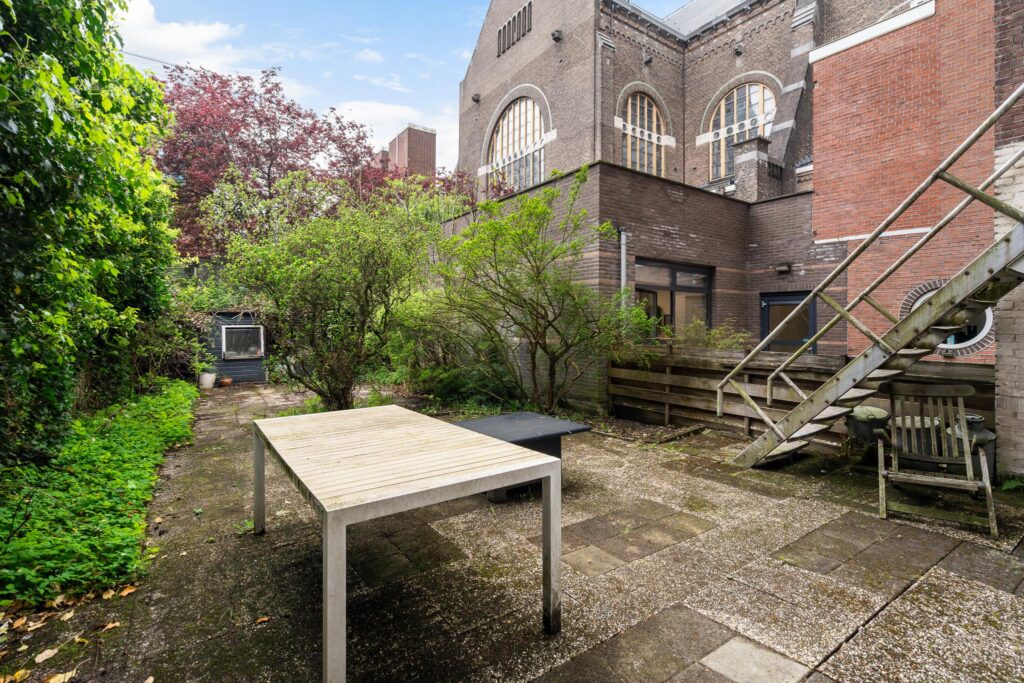 A rare find in Rotterdam-West: this charming double ground-floor apartment offers 180 m² of living space spread over two levels (ground and first floor), with an impressive 18-meter deep backyard. Located in a protected heritage zone, the property is part of a beautifully preserved early 1900s building block, rich in architectural character.