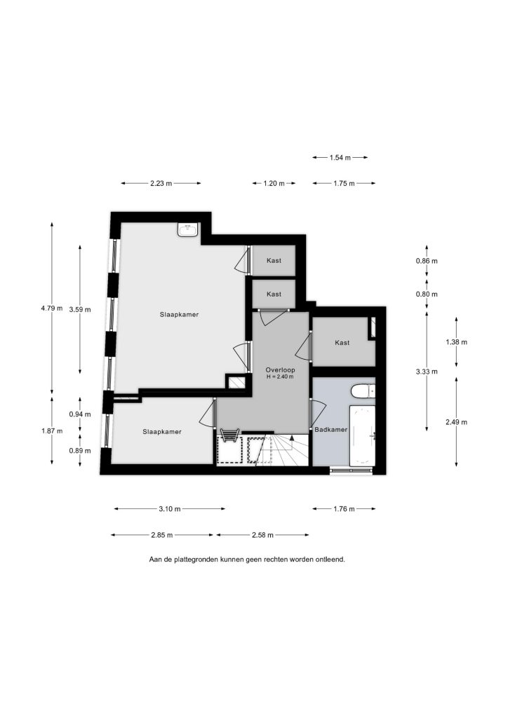 – overloop met vaste kasten en wc;