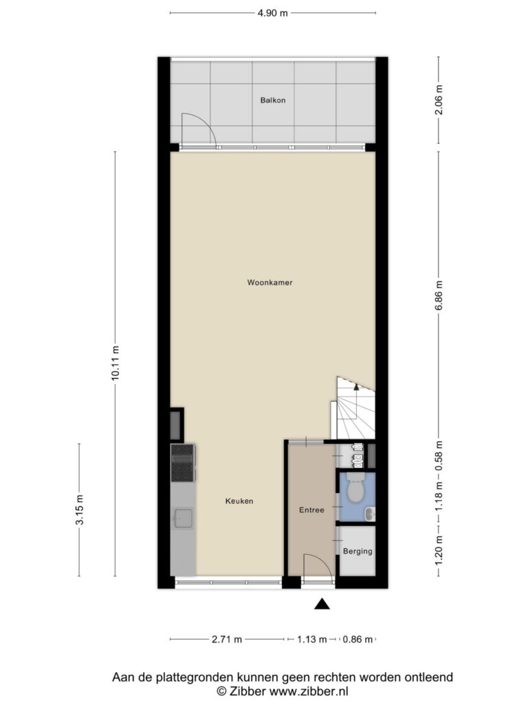 Begane grond: gezamenlijke entree, met brievenbussen en een bellentableau, trappenhuis.