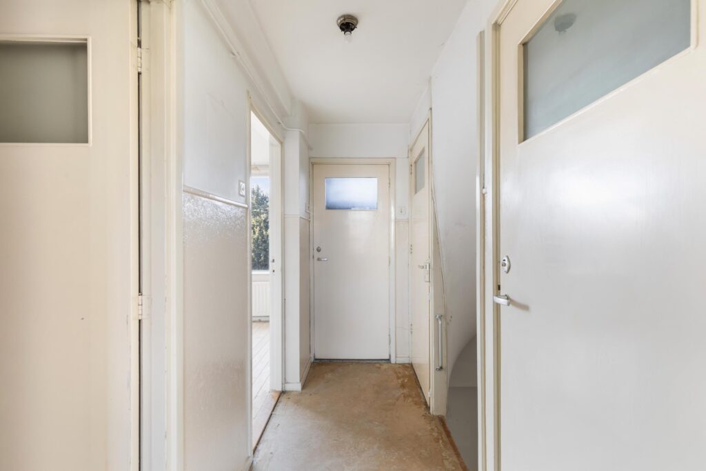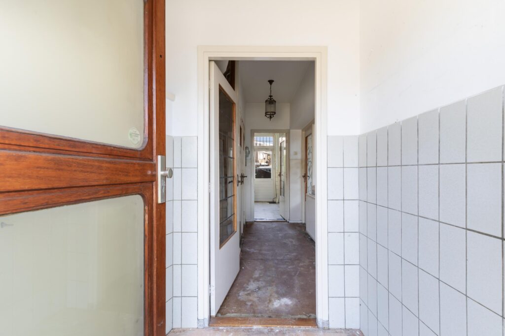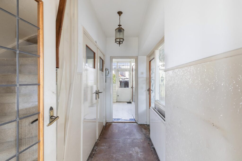 Ruime entree met gang, meterkast en een toilet. Toegang tot de doorzon woonkamer. Afgesloten keuken met eenvoudige opstelling. De achtertuin biedt veel privacy.