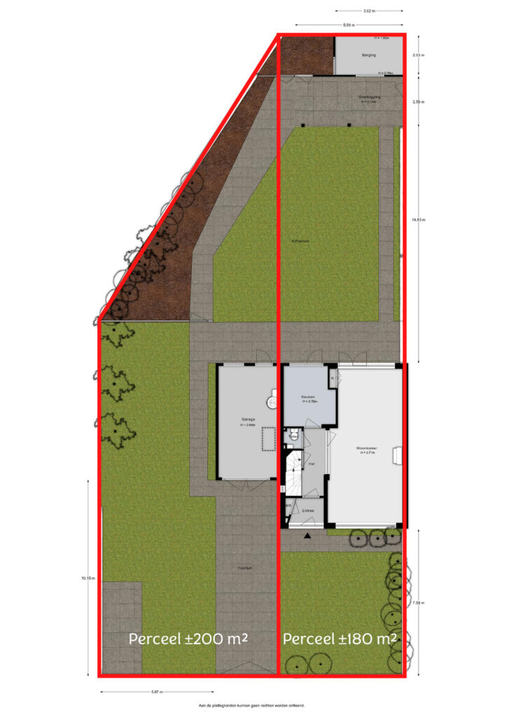 – Perceeloppervlakte circa 180 m2 eigen grond (dient nog te worden ingemeten);