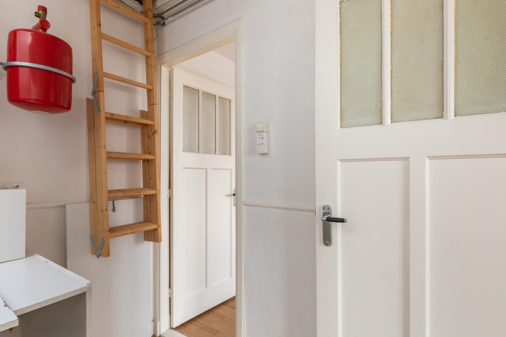 Halve 3e verdieping: overloop met CV Remeha Avanta, wasmachine aansluiting en vlizotrap naar het dak. Slaapkamer I en II.
