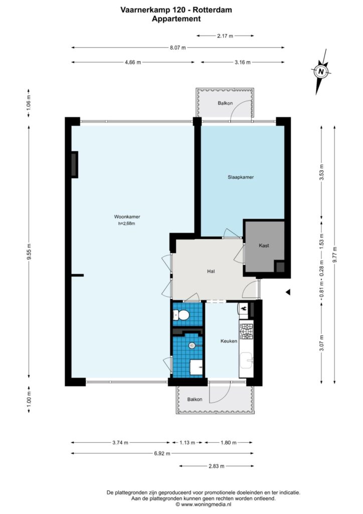 Zie de bijgevoegde plattegronden voor de maatvoering.
