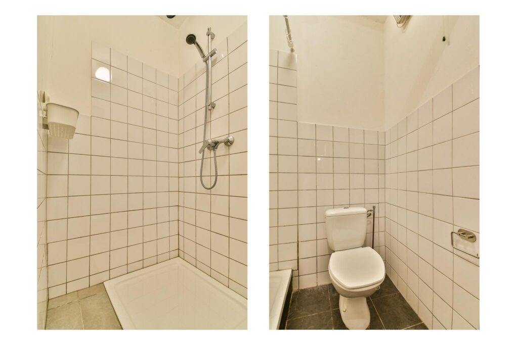 – badkamer met douche en toilet