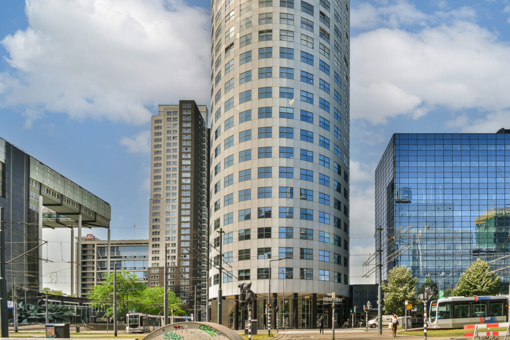 De Houthofftoren is een modern wooncomplex uit 1990, gelegen aan het iconische Weena – dé centrale as van Rotterdam die loopt van het Centraal Station tot aan het Hofplein. Deze levendige en goed bereikbare locatie ligt letterlijk op steenworp afstand van alles wat Rotterdam te bieden heeft: van het bruisende centrum, winkels en restaurants tot culturele hotspots als De Doelen, het Schouwburgplein en het nieuwe Depot Boijmans Van Beuningen.