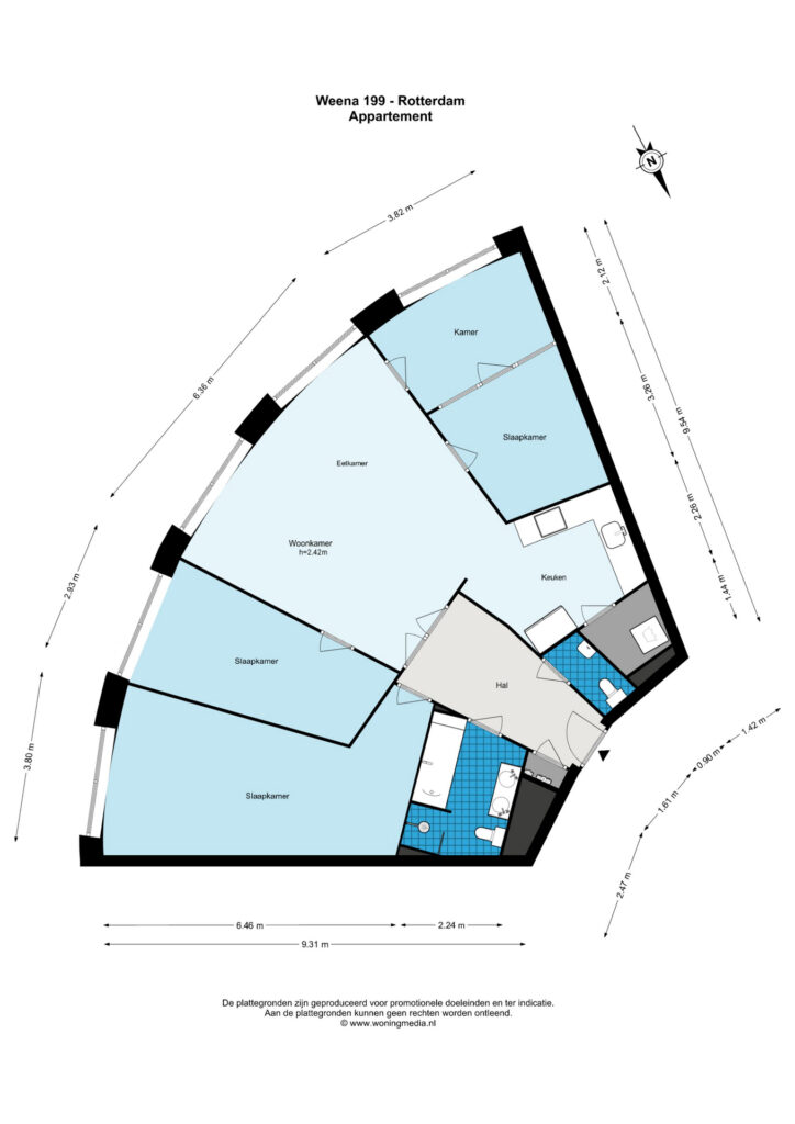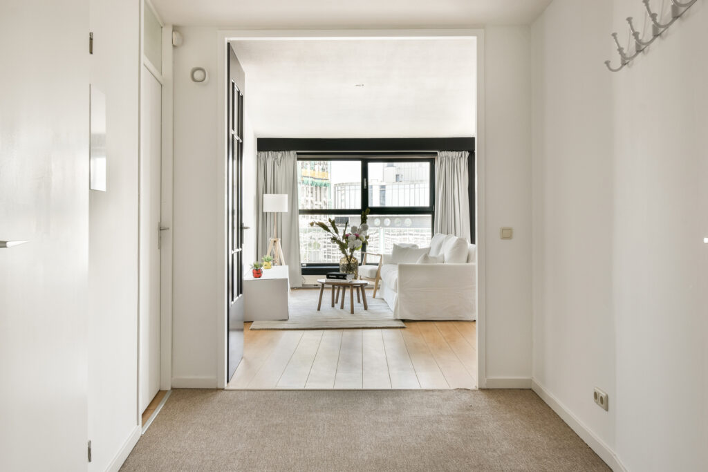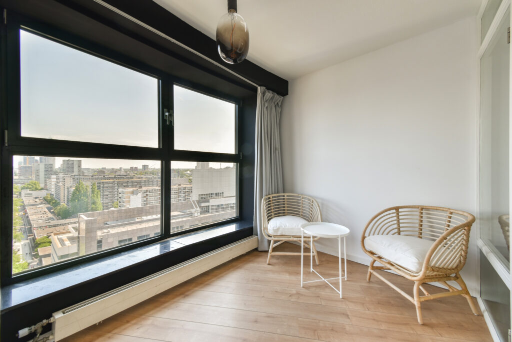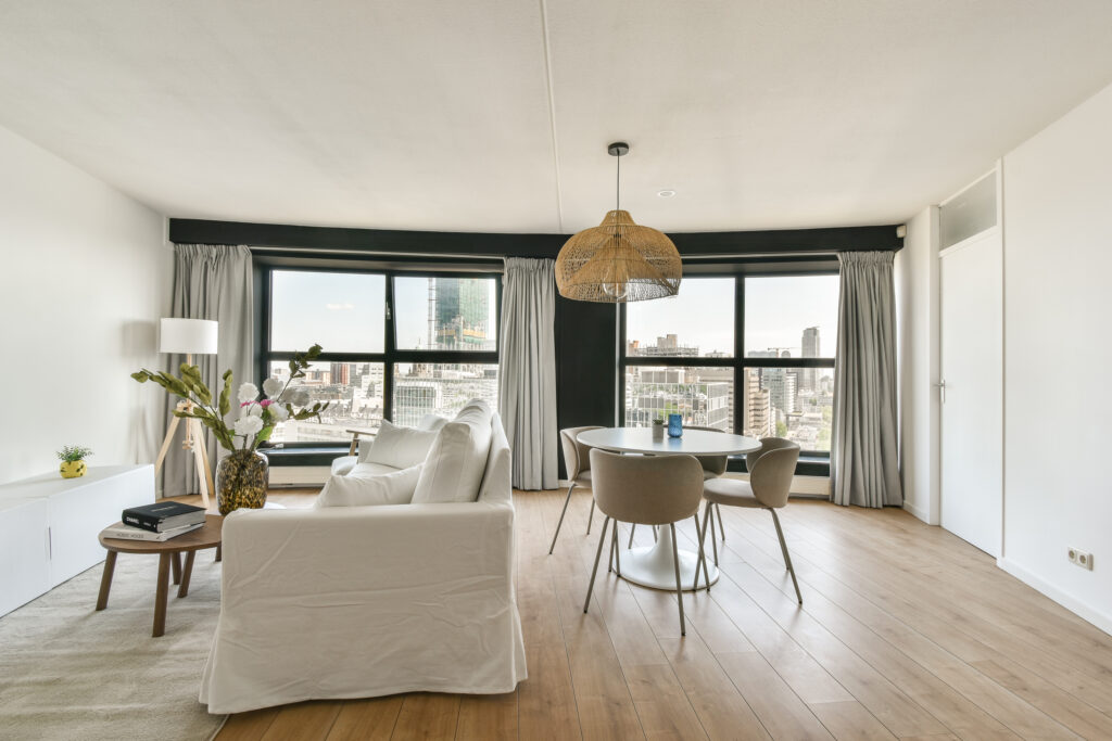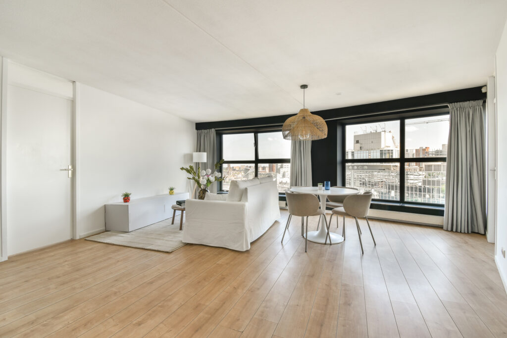 Het appartement beschikt over een royale en praktische indeling met maar liefst vijf kamers, waaronder een ruime living met grote raampartijen die het uitzicht volledig tot zijn recht laten komen. De hoogte zorgt voor een overvloed aan licht en een gevoel van vrijheid, terwijl je uitkijkt over het bruisende Rotterdamse stadsleven.